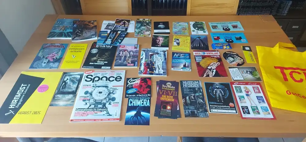 Auf dem Foto (s. u.) von Norbert (Fiks) sind weitere Inhalte zu sehen (vergesst allerdings die beiden Fanzines oben links, das sind Para 126 und TERRA FANtastisch 01, die ihr als Clubmitglieder eh bekommt):